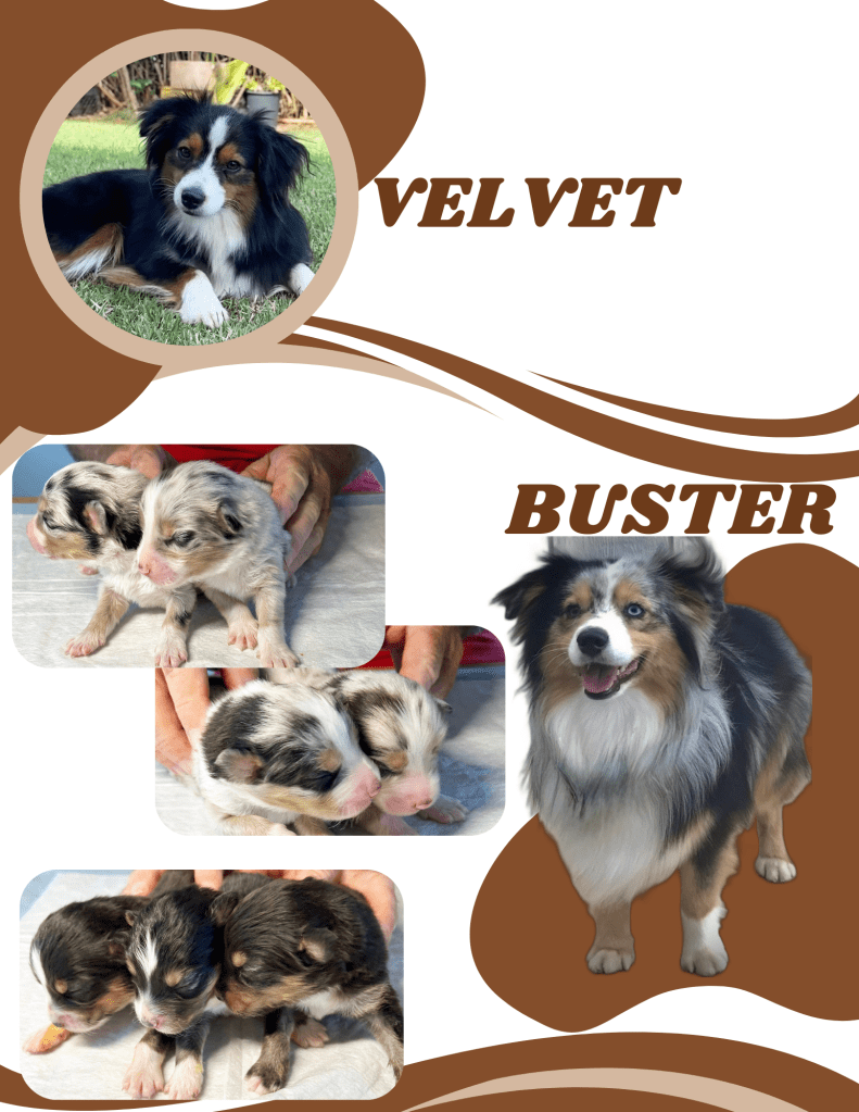 The five puppies below should be available around the 1st or 2nd week of January. They have some growing to do yet! This litter was Velvet’s second. And yes, Buster has been a busy boy!